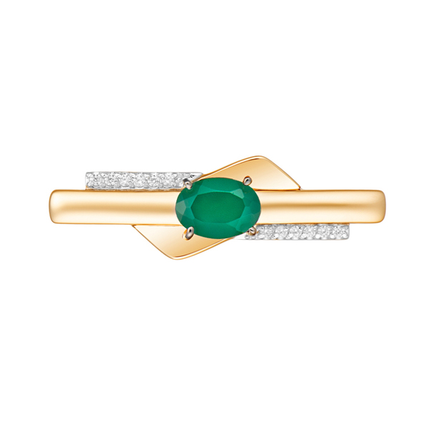 Брошь с чёткой, графичной композицией и акцентом на геометрию. В центре — изумруд овальной огранки, расположенный по горизонтали, подчёркивая стройность формы. Металлическая основа дополнена горизонтальными вставками из сияющих фианитов, создающими чистый ритм линий и световых акцентов. Украшение выглядит строго, стильно и современно — для тех, кто ценит ясность формы и выразительность деталей. Идеальный выбор для лаконичного, уверенного образа.