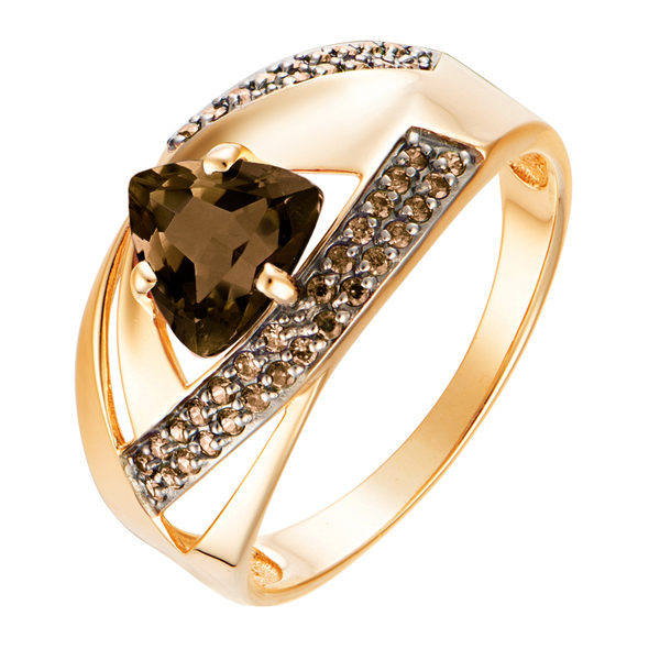 Кольцо из красного золота с раух-топазом притягивает взгляд дымчато-коричневым оттенком, напоминающим карамель в мягком свете. Фианитовая обсыпка в тон камня создаёт объёмное, бархатистое свечение. Это украшение идеально впишется в образы с природными оттенками — шоколад, олива, песок. Отлично смотрится с гладкими фактурами: шёлком, кожей или костюмной тканью. Кольцо подчёркивает вкус и стиль без лишнего шума — для тех, кто ценит нюансы.