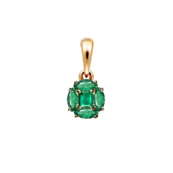 Небольшая подвеска с ярким акцентом в центре — квадратный изумруд с четкой огранкой, словно застылый изумрудный луч. Вокруг него плотно расположились четыре изумруда с изящной маркизной огранкой, создавая эффект живой зелёной гармонии и игры света.