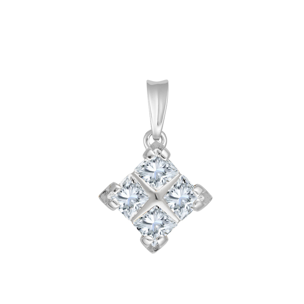 Элегантная подвеска из белого золота с современным архитектурным дизайном. Четыре квадратных элемента, усыпанных сияющими фианитами, складываются в изящную форму ромба. Игра света на чистом блеске камней создаёт эффект глубины и объёма. Украшение смотрится стильно и утончённо, подчёркивая вкус и индивидуальность. Идеально подойдёт как для повседневных образов, так и для особых случаев.