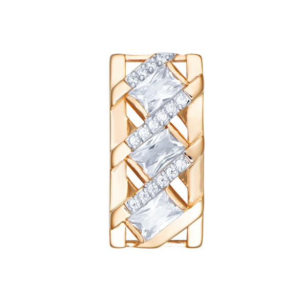 Эта подвеска из красного золота — воплощение современного стиля с акцентом на геометрию и блеск. Вдоль диагонали строго выстроены три фианита с огранкой «багет», подчёркнутые мерцающей дорожкой из мелких фианитов. Чистые линии и симметрия придают украшению графичность и утончённость. Игра света на гранях создаёт эффект объёма и глубины. Идеальное решение для тех, кто ценит минимализм с характером.