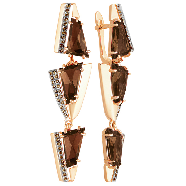 Эффектные серьги с раух-топазами насыщенного коньячного оттенка — выбор для тех, кто ценит выразительность формы и глубину цвета. Геометричная композиция дополнена сиянием фианитов, создающим объём и блеск в каждом изгибе. Украшение притягивает взгляд и легко становится акцентом в образе — как вечернем, так и повседневном.