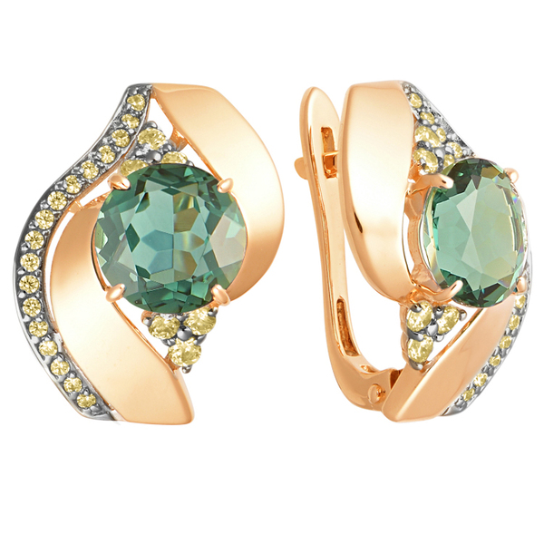 Гармоничные серьги с асимметричной оправой. В центре — крупные зелёные кварцы, оттенки которого варьируется от нежного мятного до насыщенного оливкового. Боковые дорожки из фианитов изогнуты по касательной, визуально вытягивая форму изделия и придавая ему лёгкость. Камни закреплены максимально открыто, что позволяет свету проникать сквозь него и усиливает внутреннее свечение. Изысканная композиция для тех, кто выбирает неочевидную классику.
