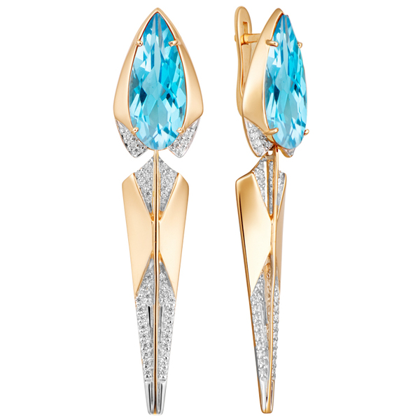 Эффектные серьги с крупными ситал топазами огранки вытянутая «груша» — смелая геометрия и благородный блеск. Архитектурный силуэт дополнен сиянием фианитов, подчёркивающим глубину центральных камней. Широкая форма и вытянутые пропорции делают украшение выразительным акцентом — для тех, кто выбирает уверенную элегантность. Серьги смотрятся смело и дерзко и не нуждаются в сопровждении других украшений.