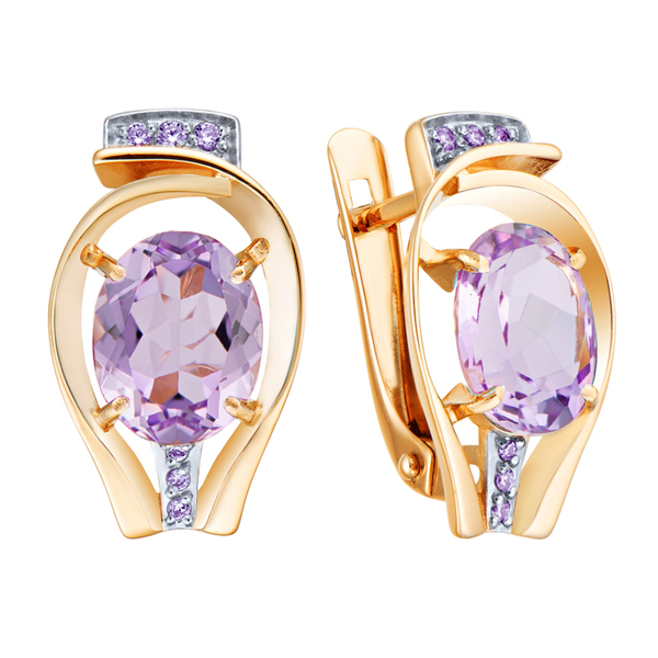 Серьги с аметистами овальной огранки словно раскрытый бутон: две плавные линии металла формируют лёгкую, почти воздушную оправу, обнимающую камень, как лепестки — сердцевину цветка. Полупрозрачные аметисты сияют изнутри, а в основании композиций — изящные лепестки с рассыпью фианитов в тон, добавляющие глубину и мягкое свечение. Украшение наполнено пластикой, светом и тонкой ювелирной поэзией.